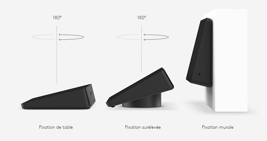 Plusieurs possibilités s'offrent à vous pour fixer la Logitech Tap sur la table, sur le mur ou une fixation surélevée.
