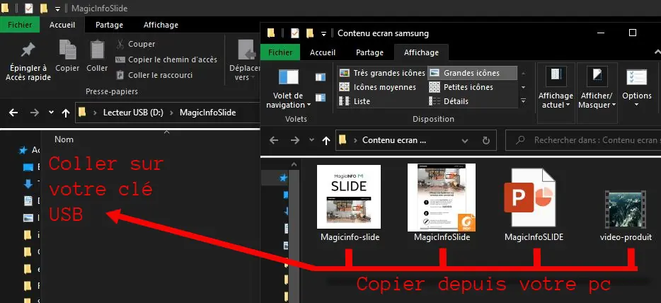 MagicINFO Slide est facile à utiliser, il fait parti de ces logiciels plug&play : c'est en branchant simplement une clé USB (de 16GB et moins) à votre écran que vous diffusez du contenu, et ce sans avoir besoin d'une télécommande ou de faire des réglages sur votre écran.