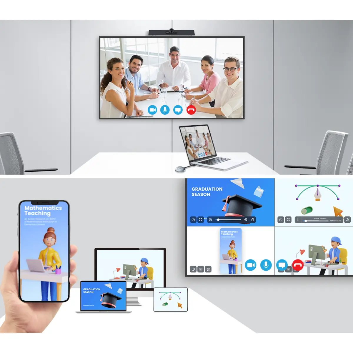 Partage d'écran sans fil : Si vous souhaitez partager une présentation sur l'écran de la salle de réunion, vous avez aussi la possibilité d'utiliser MAXHUB Share app. Avec cette application, les utilisateurs peuvent facilement dupliquer l'écran de leur smartphone, tablette ou ordinateur. Jusqu'à 4 partages d'écran peuvent être effectués de manière simultanée. Le tout sans fil !