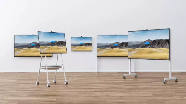 Fin et élégant, l'écran 85 pouces Surface Hub 2S s'intègre parfaitement dans vos espaces de travail : accrochez-le sur un support mural ou disposez-le sur un pied mobile, vous permettant ainsi de le déplacer d'une salle de réunion à l'autre.