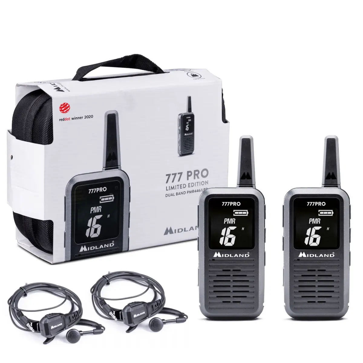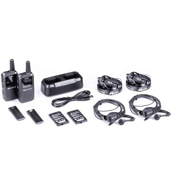 Le pack Midand 777 Pro Limited Edition est composé de 2 Midland 777 Pro, 2 oreillettes contour d'oreille, 1 mallette de transport, 1 chargeur double, 2 tours de cou, 2 batteries de 1000 mAh.