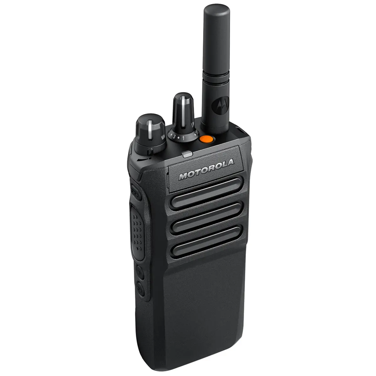 Le talkie-walkie Motorola R7A est une radio numérique avec licence nécessitant une bande de fréquence UHF (entre 400 et 527 MHz) dédiée. Il peut communiquer avec des talkies-walkies analogiques et numériques, il sera donc compatible avec l'ensemble des radios de votre parc..