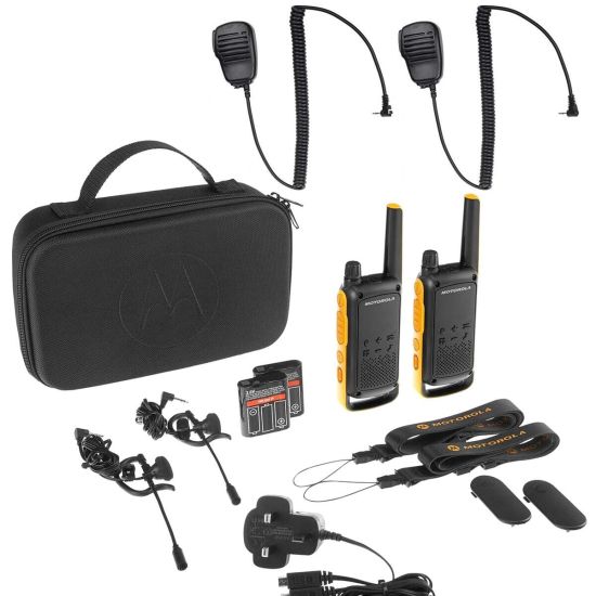 Ce pack comprend deux Motorola T82 Ex Duo, 2 micros déportés, 1 mallette de transport, un double chargeur USB, 2 batteries Nimh, 2 oreillettes mains libres, 2 dragonnes, 2 clips ceintures et un jeu de stickers pour personnaliser vos appareils.