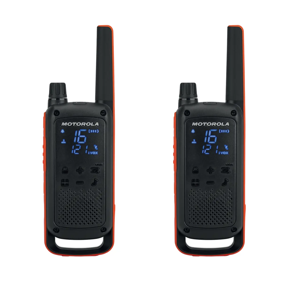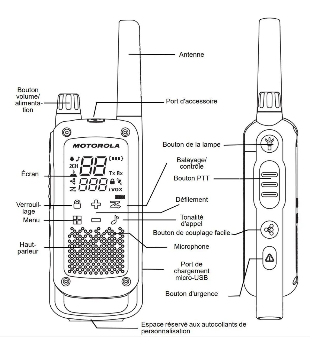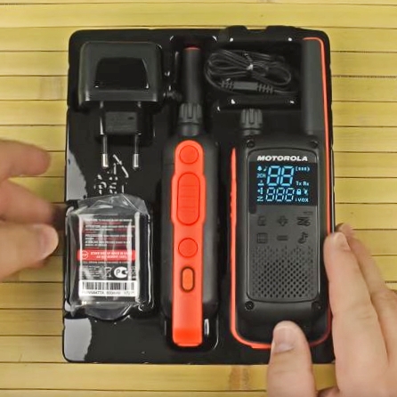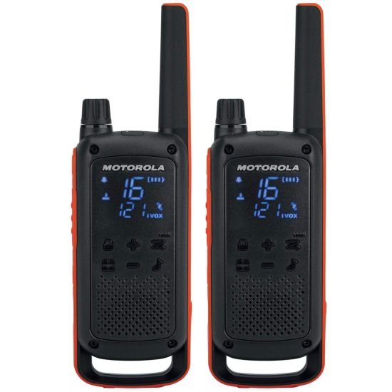 Fourni en pack de 2 et sans licence, il permet des communications gratuites sur un rayon pouvant aller jusque 10 km en champ libre. Le talkie walkie USB T82 Motorola est doté d'un tout nouveau système d'affichage LED intégré à la surface du portatif. Ce système d'affichage offre plusieurs avantages : consommation plus faible, résistance et confort de lecture accru même en plein soleil.