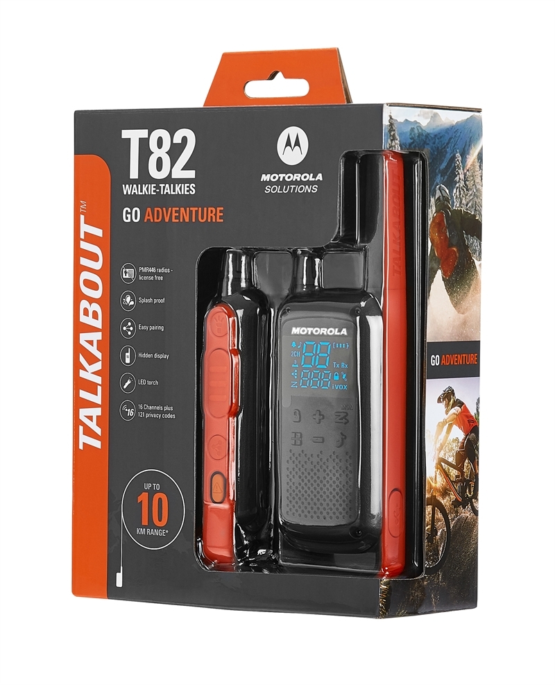 Le Motorola T82 est doté d'une lampe torche, d'un clip ceinture et d'une prise jack 2,5 permettant l'utilisation d'oreillettes. Grâce à son système de charge, la batterie du pack de talkies-walkies T82 peut être chargée sur toute prise USB et est fournie avec 2 cordon USB ainsi qu'un transfo 220 volts.