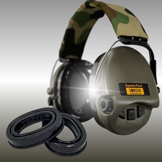 Ce casque disposant du serre-tête en finition camouflage avec une puissante LED d'éclairage en façade est une version du casque Sordin Supreme Pro X Vert avec les mêmes caractéristiques.