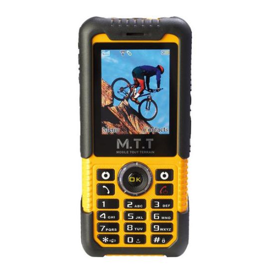 Le M.T.T. Robust + est imperméable aux liquides et aux poussières. Il supporte de forts taux d'hygrométrie, des projections de liquides non corrosifs, ce qui en fait un mobile idéal pour les personnes pratiquant des sports aquatiques, extrêmes ou des métiers maritimes.