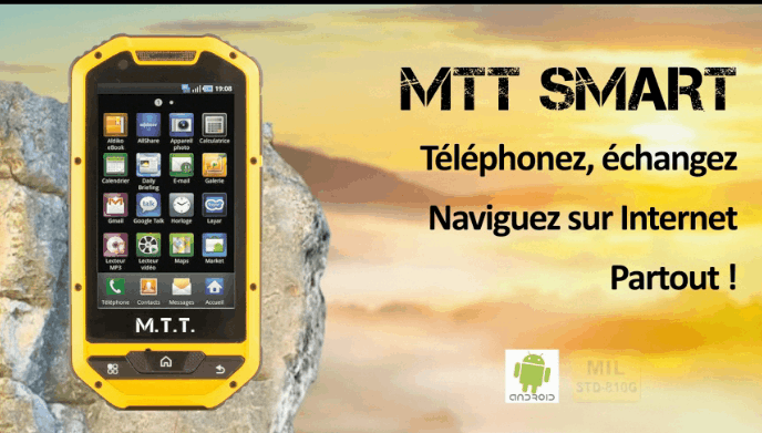 Le MTT Smart Multimedia est un mobile Androïd tactile durci, entièremment étanche, particulièrement robuste avec fonction double SIM .