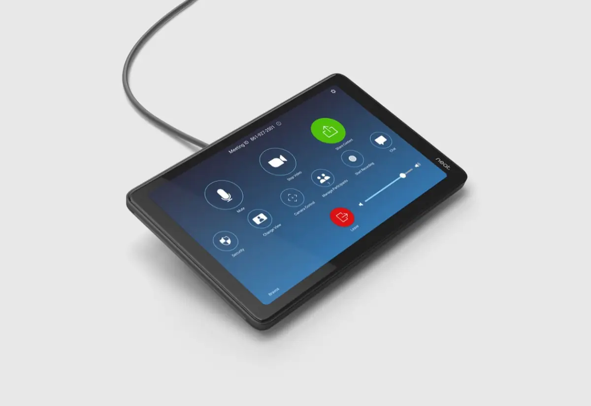 Autonome, il est nécessaire de posséder une licence de salle Zoom Room ou Microsoft Teams Rooms pour utiliser cette solution. Vous n'aurez alors plus besoin d'apporter votre ordinateur et de brancher en USB le matériel de visio de la salle pour rejoindre une conférence. Un simple clic sur la tablette Neat Pad lancera votre réunion. Un mode BYOD est également possible. L'utilisateur peut se connecter à la Neat Bar Pro avec un ordinateur portable afin d'utiliser le logiciel de conférence de son choix.