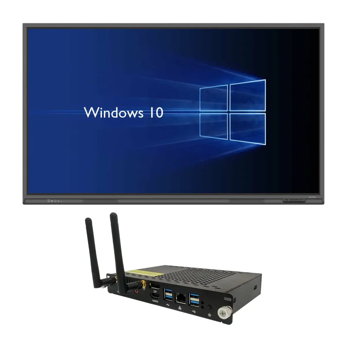 L'écran numérique interactif Newline Lyra 55 pouces est équipé nativement d'un système d'exploitation Android. En intégrant le PC au format OPS dans l'emplacement dédié sur l'écran, vous bénéficiez d'une seconde interface Windows. Grâce à ce PC au format standardisé, il vous est possible de gérer votre écran comme votre ordnateur Windows personnel. Vous pouvez exécuter des applications comme Excel, Power Point, et naviguer sur le web.