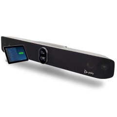Solution de salle autonome pour Microsoft Teams Room, Zoom Rooms ou Google Meet Hardware composé de la caméra tout-en-un Poly X70, de la tablette de contrôle TC8, du tableau interactif Newline Lyra Pro 98 pouces et d'un pied roulant. Un seul clic sur la tablette suffit pour lancer votre visioconférence.