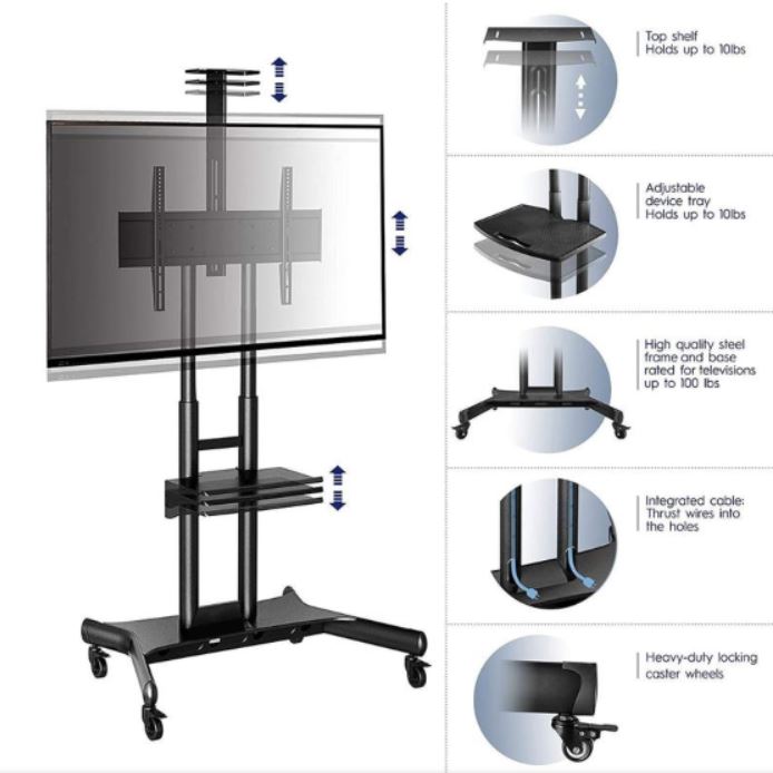 Description du Pied mobile noir pour écran de 55 à 85 pouces