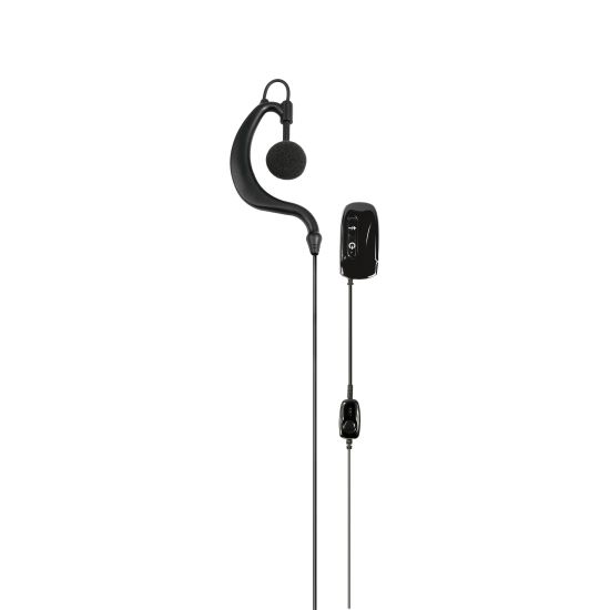 Oreillette bluetooth en contour d'oreille avec bouton PTT. Cet accessoire se connecte à un talkie walkie Midland ou Kenwood équipé du dongle Bluetooth double broche (C1199 ou C1199.01) Alan Midland, ou à un smartphone Bluetooth.