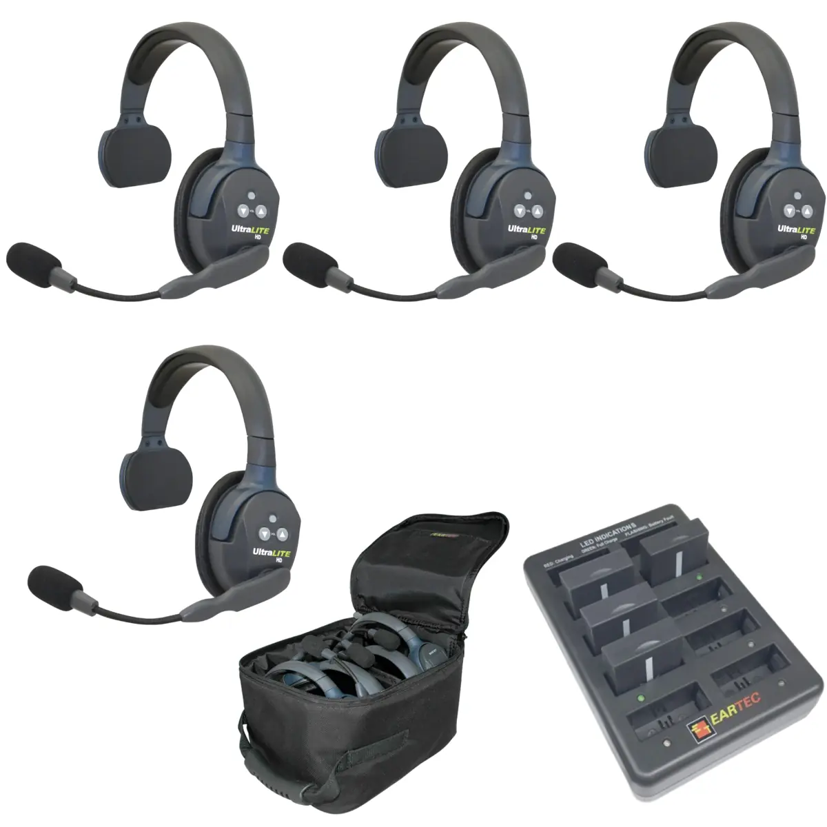 Le Pack de 4 Eartec UltraLITE HD est un pack composé de 3 casques intercom Eartec UltraLite HD Mono Esclaves et d'un casque intercom Eartec UltraLite HD Mono Maître. Ce pack a pour objectif de vous faire converser à plusieurs sans interruption grâce à ses fonctions intercom. Doté de la technologie DECT, ces casques intercom sont Full Duplex pour vous permettre de converser sans avoir la nécessite d'appuyer sur un bouton PTT.