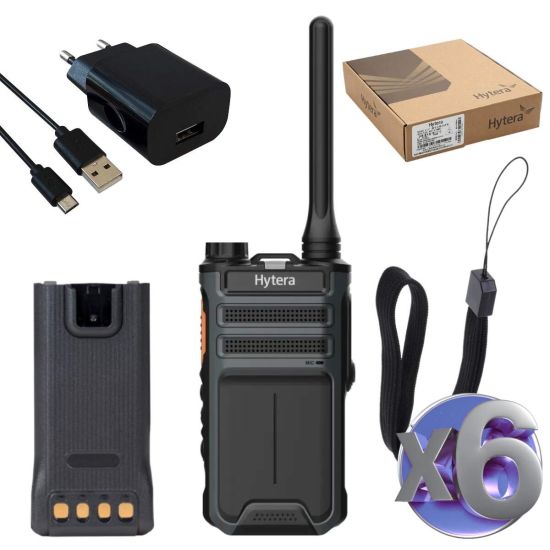 Office Eeasy vous propose un pack clé en main comprenant 6 radios Hytera, immédiatement utilisables pour parler en groupe grace aux 32 canaux réglables avec la molette crantée.