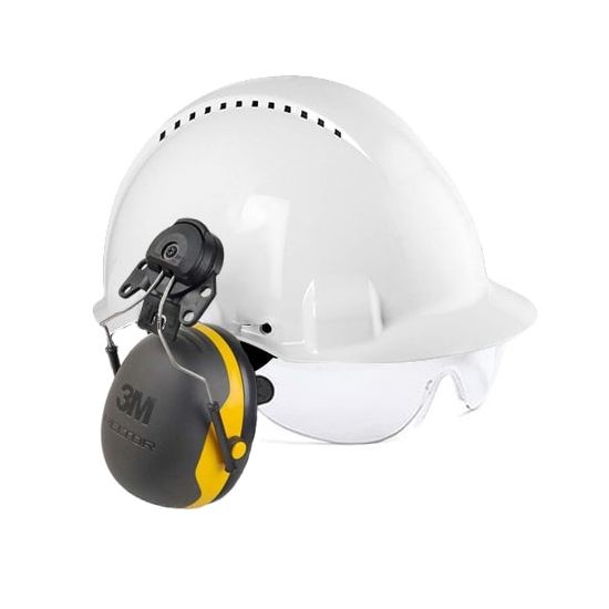 Cet ensemble combine un casque de chantier à des lunettes de protection réglables dans la doublure. Des coquilles anti-bruits sont prévues pour s'attacher spécialement au casque. Pratique, rapide et confortable, ce pack vous permet de vous concentrer sur votre tache sans vous préoccuper de devoir mettre tour à tour les 3 protections : D'un seul geste, vous mettez le casque, vous êtes protégé.