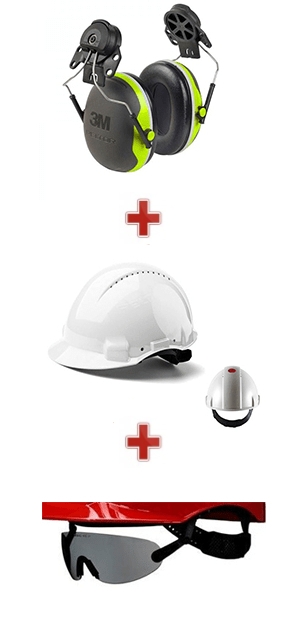 Cet ensemble combine un casque de chantier à des lunettes de protection réglables dans la doublure. Des coquilles anti-bruits sont prévues pour s'attacher spécialement au casque. Pratique, rapide et confortable, ce pack vous permet de vous concentrer sur votre tache sans vous préoccuper de devoir mettre tour à tour les 3 protections : D'un seul geste, vous mettez le casque, vous êtes protégé.