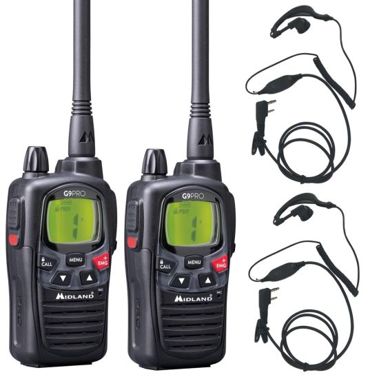 Pack de 2 Midland G9 PRO : talkies-walkies longue portée avec touche appel d'urgence.