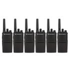 Inclus dans le pack spécial : 6 talkies-walkies Motorola XT420, avec chargeurs, batteries, alimentations et étuis clips ceinture pour chaque appareil.