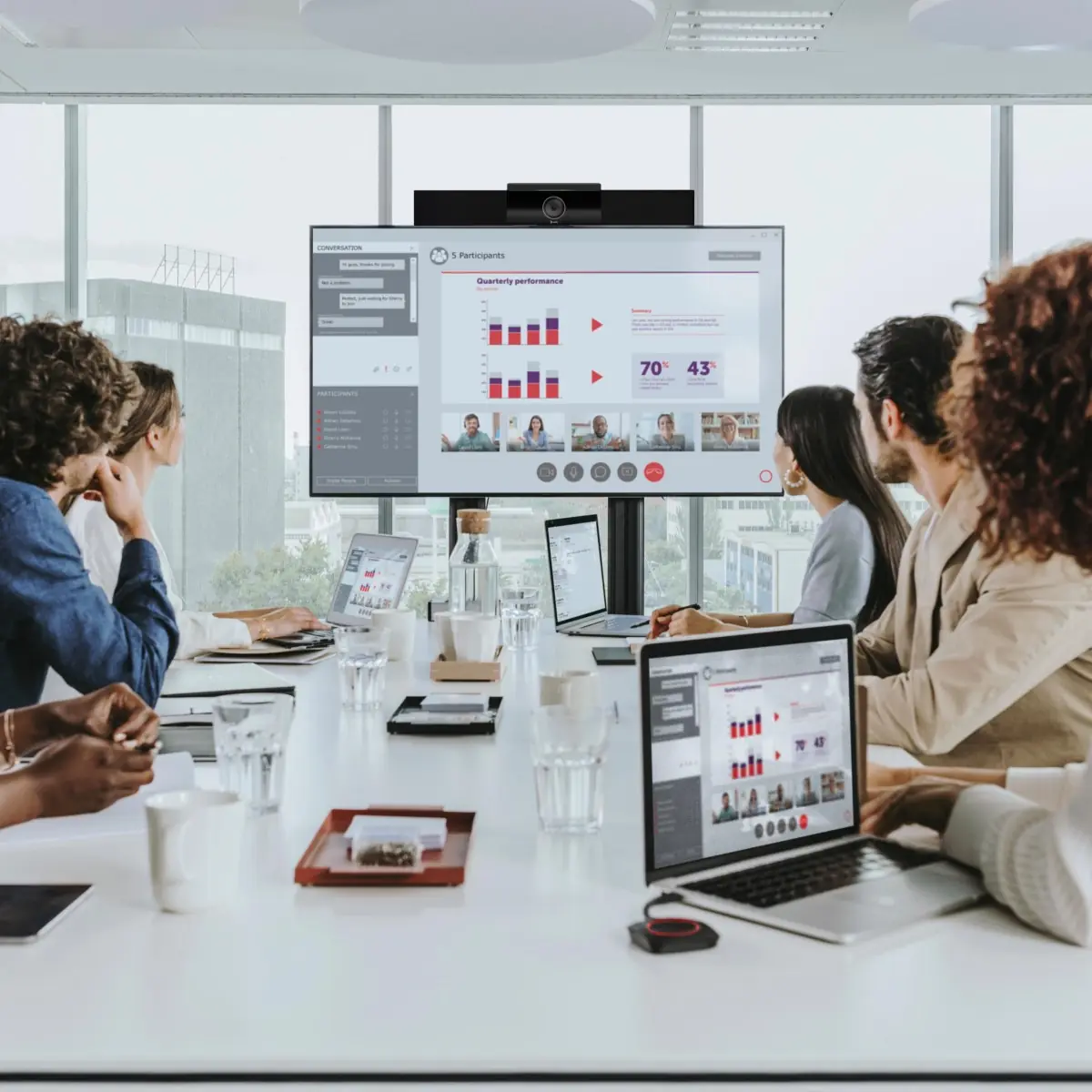 Cet ensemble camera viso avec enceintes intégrées correspond complètement à nos attentes, le son est parafait et la qualité vidéo également. Le système de zoom automatique sur la personne qui parle est également très appréciable
