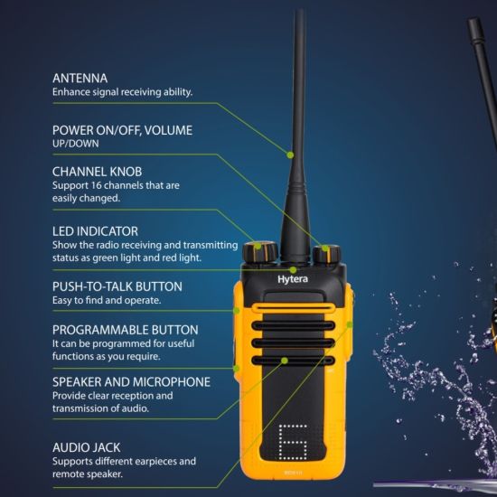 Le Hytera BD615 est un talkie-walkie professionnelle mixte numérique et analogique bénéficiant de la technologie DMR (radiocommunication mobile digitale).