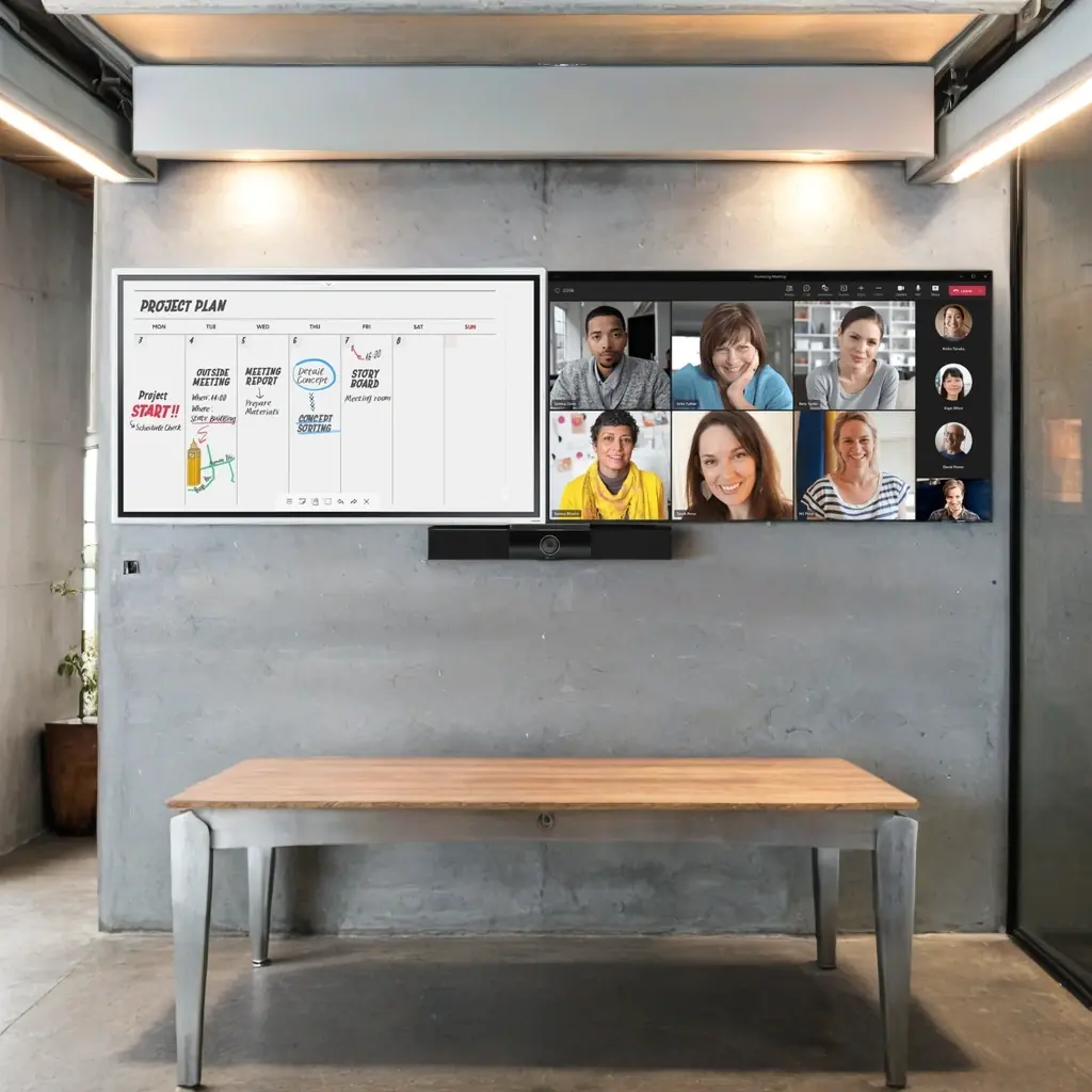 Cet ensemble camera viso avec enceintes intégrées correspond complètement à nos attentes, le son est parafait et la qualité vidéo également. Le système de zoom automatique sur la personne qui parle est également très appréciable