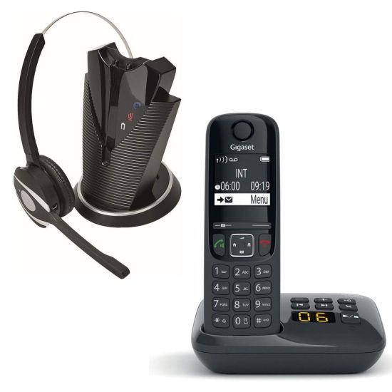 Ce pack spécial comprenant un téléphone sans fil Gigaset et un casque sans fil, vous permet de passer vos appels téléphoniques les mains libres, depuis le casque d'un simple clic.