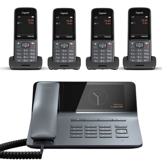 Retrouvez le mini standard Gigaset Fusion vendu en pack avec 4 combinés SL800H pro. Profitez de la possibilité de déclarer jusqu'à 20 comptes SIP et utilisez votre appareil comme un véritable mini PBX. Avec ses 20 lignes et ses 5 répondeurs intégrés, le standard Gigaset trouvera parfaitement sa place au sein de votre entreprise. Les 4 combinés sans fil permettent une installation et une utilisation professionnelle dès la réception de votre produit.