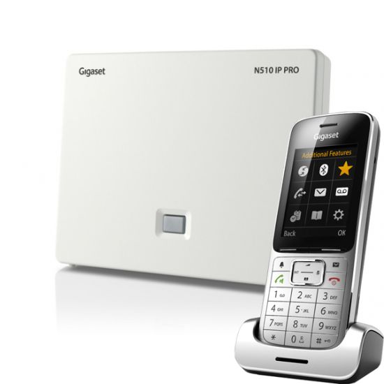 Mini standard Gigaset N510IP et téléphone sans fil professionnel supplémentaire VOIP Gigaset SL450H Pro, idéal pour communiquer confortablement dans l'entreprise.