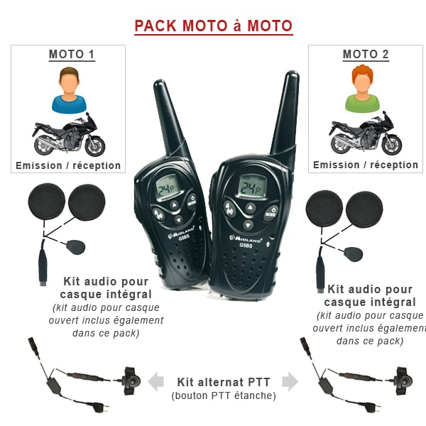 Ce pack spécial comprend tous les éléments nécessaires pour communiquer de moto à moto.