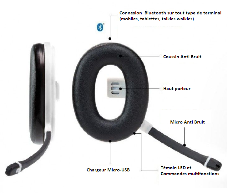 - Permet de recevoir et émettre des appels sans enlever le casque anti-bruit