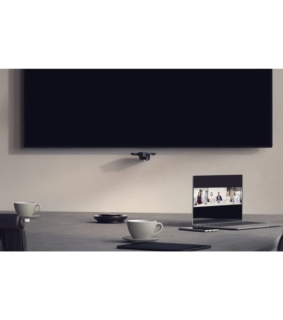 Idéale pour les petites salles et huddle rooms allant jusqu'à 5 personnes, cette caméra intelligente est dotée de 3 caméras de 13 mégapixels avec assemblage vidéo en temps réel. Ainsi, elle offre un large champ de vision panoramique de 180° permettant de ne perdre aucun espace, de n'exclure aucun participant du cadre et de se rapprocher le plus possible de l'oeil humain. Proposant une résolution de sortie UHD 4K (3840 x 1080p), elle peut zoomer jusqu'à x3 sans distorsion.