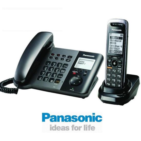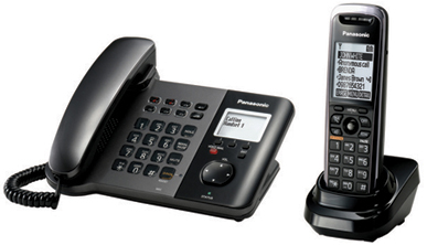 Le mini-standard Panasonic KX-TGP550 composé d'un téléphone standard et d'un combiné sans fil propose tous