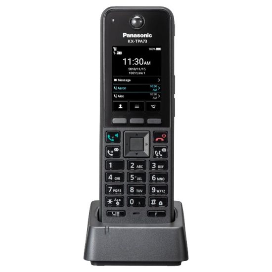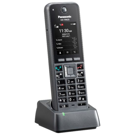 Le KX-TPA73 est un combiné sans fil Eco-Dect avec Bluetooth intégré, facile d'utilisation, avec un écran LCD couleur et des touches rétroéclairées. Il vient s'ajouter en combiné additionnel sur vos téléphones sans fil Panasonic ou bornes DECT Panasonic (exemple KX-TGP600 ou KX-TGP700). Vous réglez le combiné afin de créer une touche raccourci pour un appel direct et rapide.