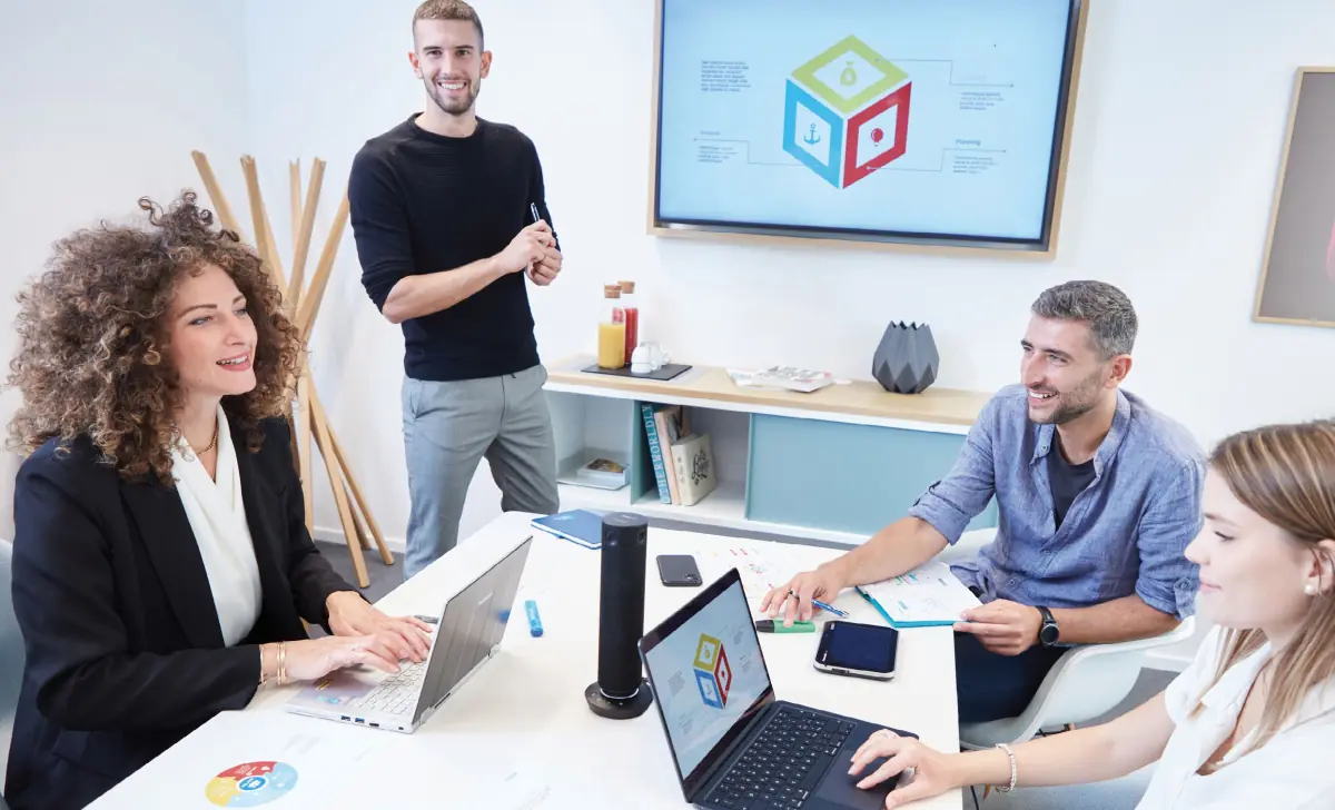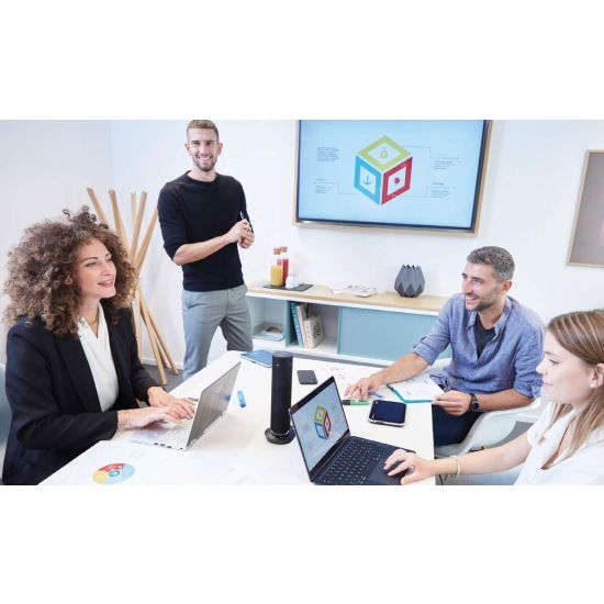 Intégrant 4 caméras, 7 microphones et un haut-parleur, elle se connecte en USB-C sur un PC ou un Mac. Reconnue automatiquement par l'ordinateur, il est alors possible de lancer une visioconférence depuis n'importe quelle plateforme : Microsoft Teams, Google Meet ou encore Zoom.