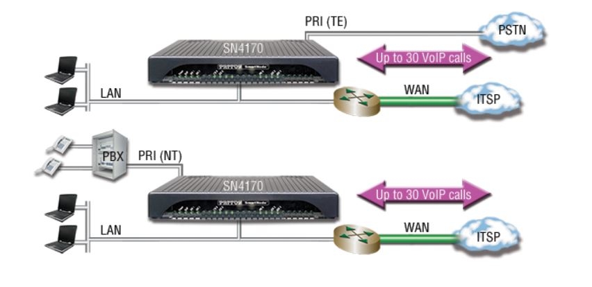 Cette passerelle VoIP est idéale pour les entreprises cherchant une solution économique leur permettant de connecter leurs systèmes PBX à un service de téléphonie et internet ou encore de relier leurs systèmes PBX sur plusieurs sites.