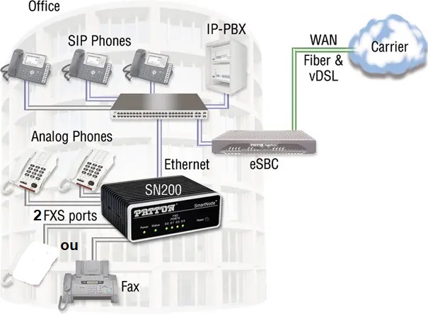 Le SN200 Patton est aussi compatible avec les fax, pour intégrer tous vos appareil analogique dans un univers de connexion unifié.
