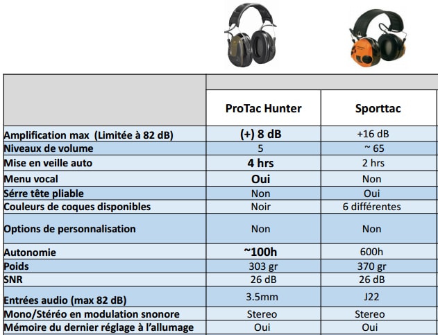 COMPARATIF SPORTTAC CHASSE VS PROTAC HUNTER