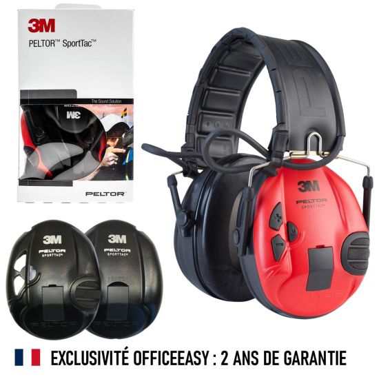 Enfin, le casque antibruit électronique Peltor SportTac Tir sportif est livré avec 2 jeux de coquilles interchangeables (rouges et noires).