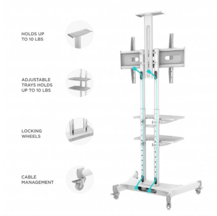 Description du Pied mobile blanc pour écran de 55 à 85 pouces