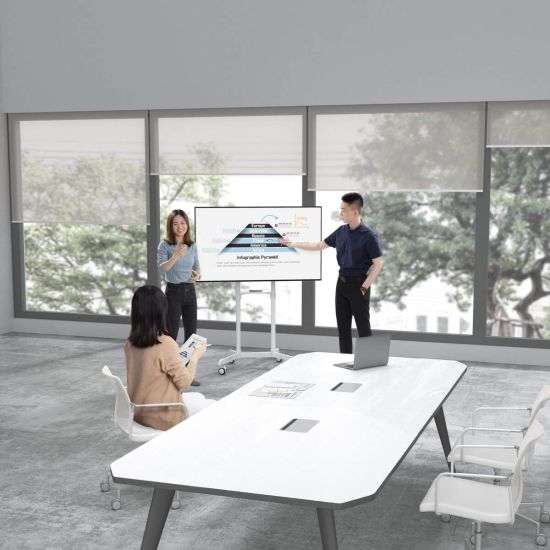 Grâce aux 4 roulettes, vous pourrez transporter très facilement votre écran d'une pièce à l'autre pour transformer chaque lieu de l'entreprise en un espace de travail collaboratif. Il s'agit de la solution parfaite pour déplacer votre écran avec une grande facilité afin qu'il profite à un maximum de collaborateurs. Les roulettes sont robustes et équipées d'un mécanisme de verrouillage.