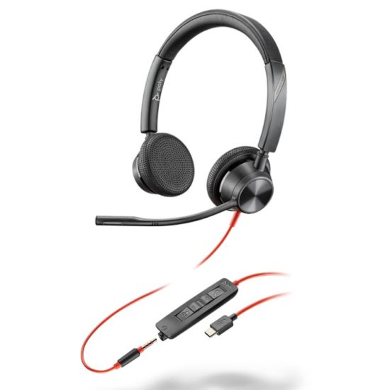 Elégant et fin, le Blackwire 3325 avec connectique USB-C/A et Jack 3.5 est un micro-casque confortable pour une utilisation prolongée grâce à ses coussinets en simili-cuir. Il offre un son de qualité grâce à la technologie large bande, le rendu est clair et naturel. La perche anti-bruit améliore encore la qualité.