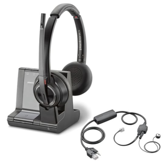 Solution complète proposant le casque Plantronics Savi 8220 et son cordon de décroché électronique
