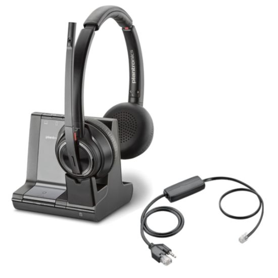 Ce pack est proposé avec le micro casque sans fil Plantronics Savi 8220 haut de gamme disposant d'une triple connectivité : USB, RJ et Bluetooth.