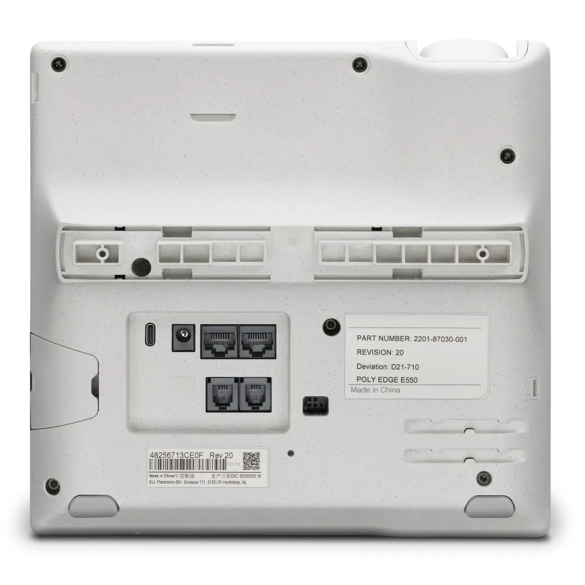 Enfin niveau alimentation, le téléphone Edge E550 s'adapte à vos bureaux. Si votre environnement est compatible, vous pourrez le brancher en PoE (alimentation avec un câble Ethernet). En option et vendu séparemment, vous retrouverez une alimentation classique à brancher sur une prise. La version E550 est doté du Wifi pour éviter l'excès de câbles sur votre bureau !