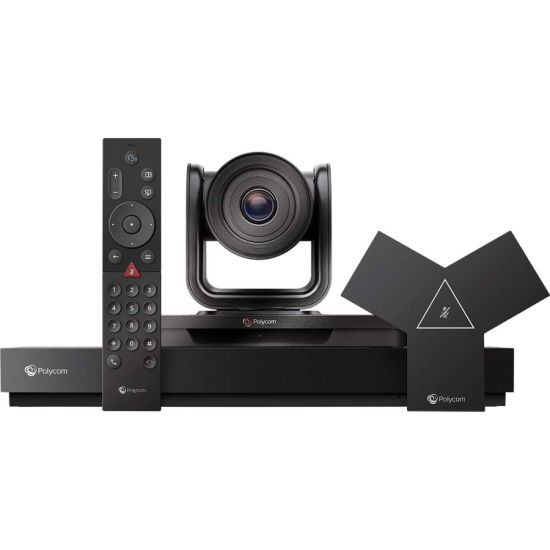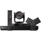 Ce pack Poly comprenant un codec, une caméra PTZ, un microphone de table et une télécommande Bluetooth, vous permet d'aménager une moyenne ou une grande salle de réunion.