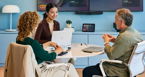 - Group framing : ajuste automatiquement l'angle de vue pour afficher tous les participants, en optimisant l'espace autour d'eux.