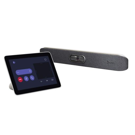 Ce pack comprenant la barre audio et vidéo Poly Studio X30 et l'écran de contrôle Poly TC8 a été pensé pour les petites salles, jusqu'à 6 personnes environ.