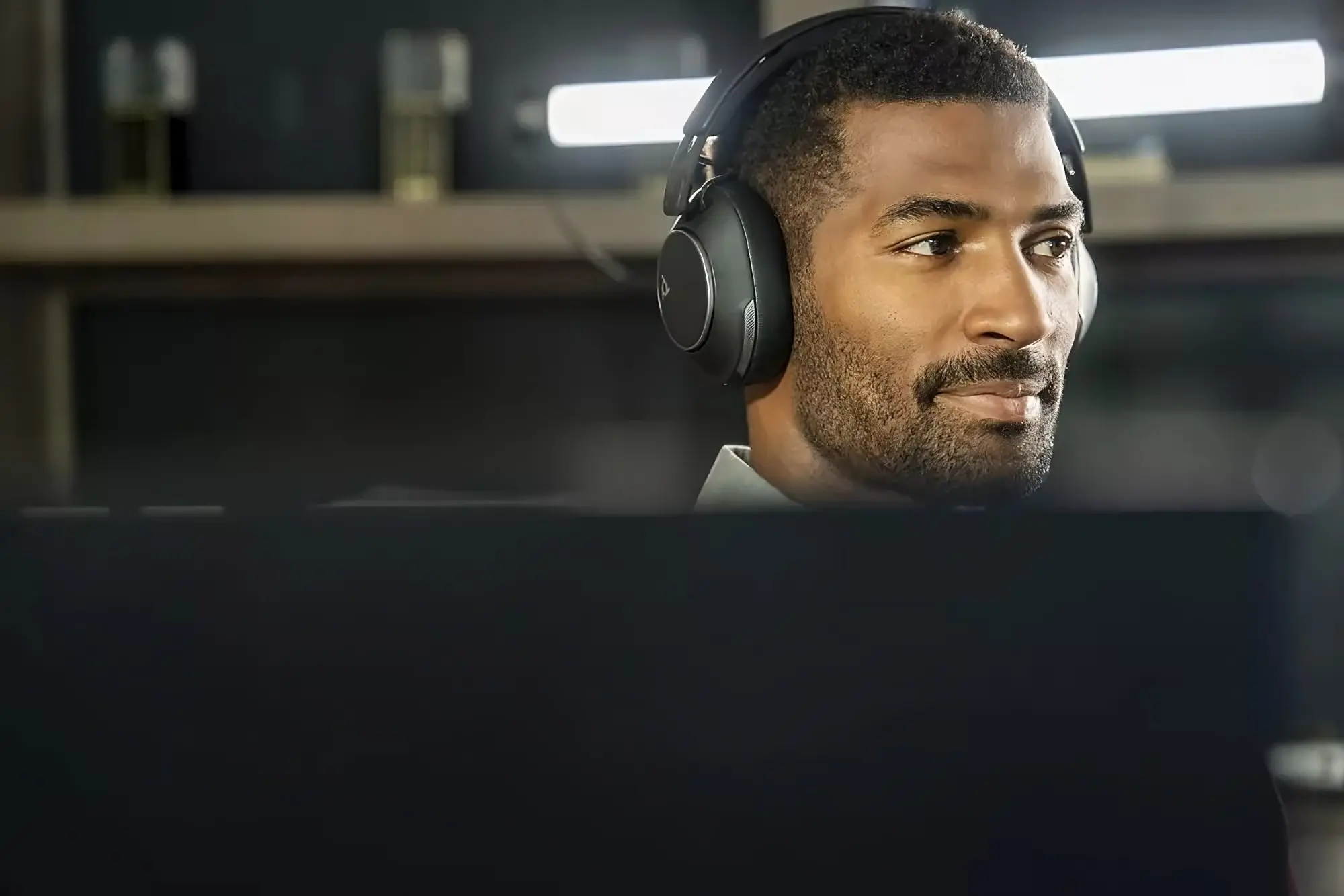 Digne héritier du Plantronics Voyager 8200, le Surround 80 est un micro-casque sans perche, avec plusieurs micros ultra-performants directement incrustés au niveau des coques. Conçu pour un port sur le long terme, il est beaucoup plus léger que son prédecesseur et permet de ne pas devenir trop encombrant, même après plusieurs heures d'écoute.