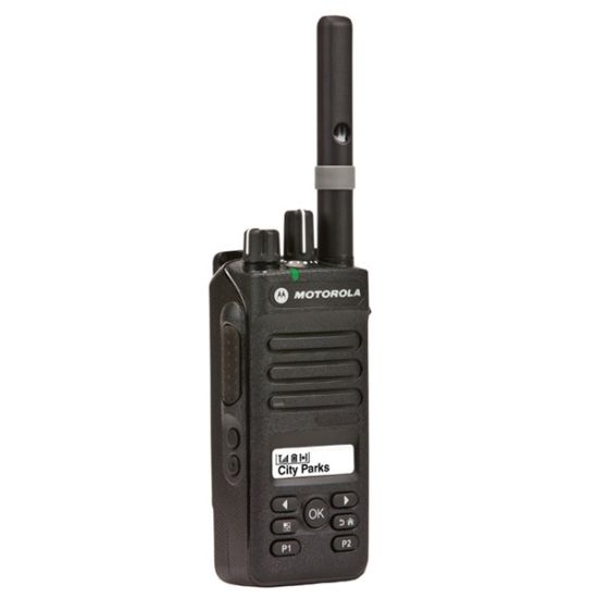 Le Motorola DP2600e est une radio mixte analogique et numérique de la gamme Mototrbo DP2000e proposant un afficheur et un clavier.